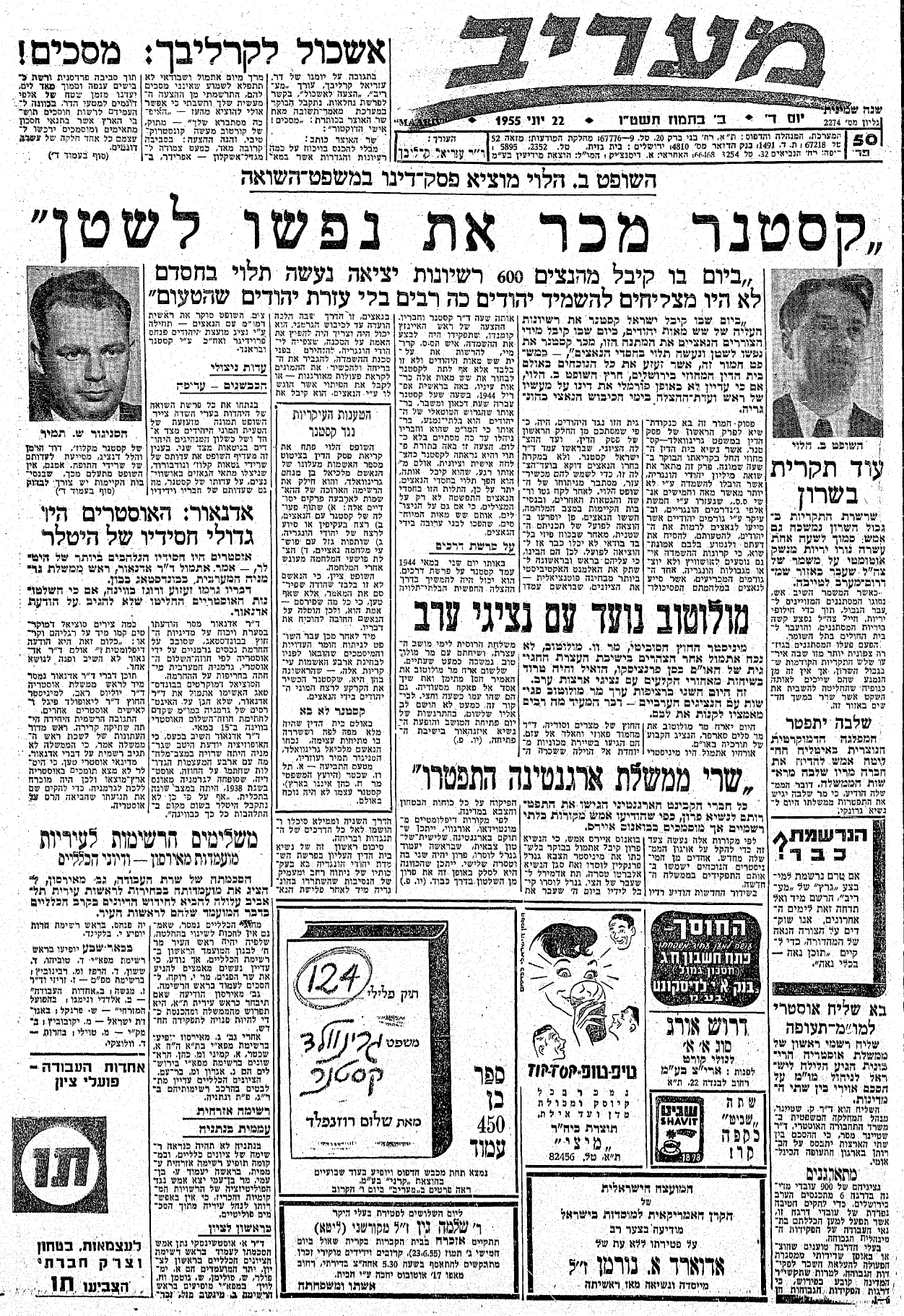 עיינו בכתבה הבאה, מעיתון מעריב מה-22/6/1955: